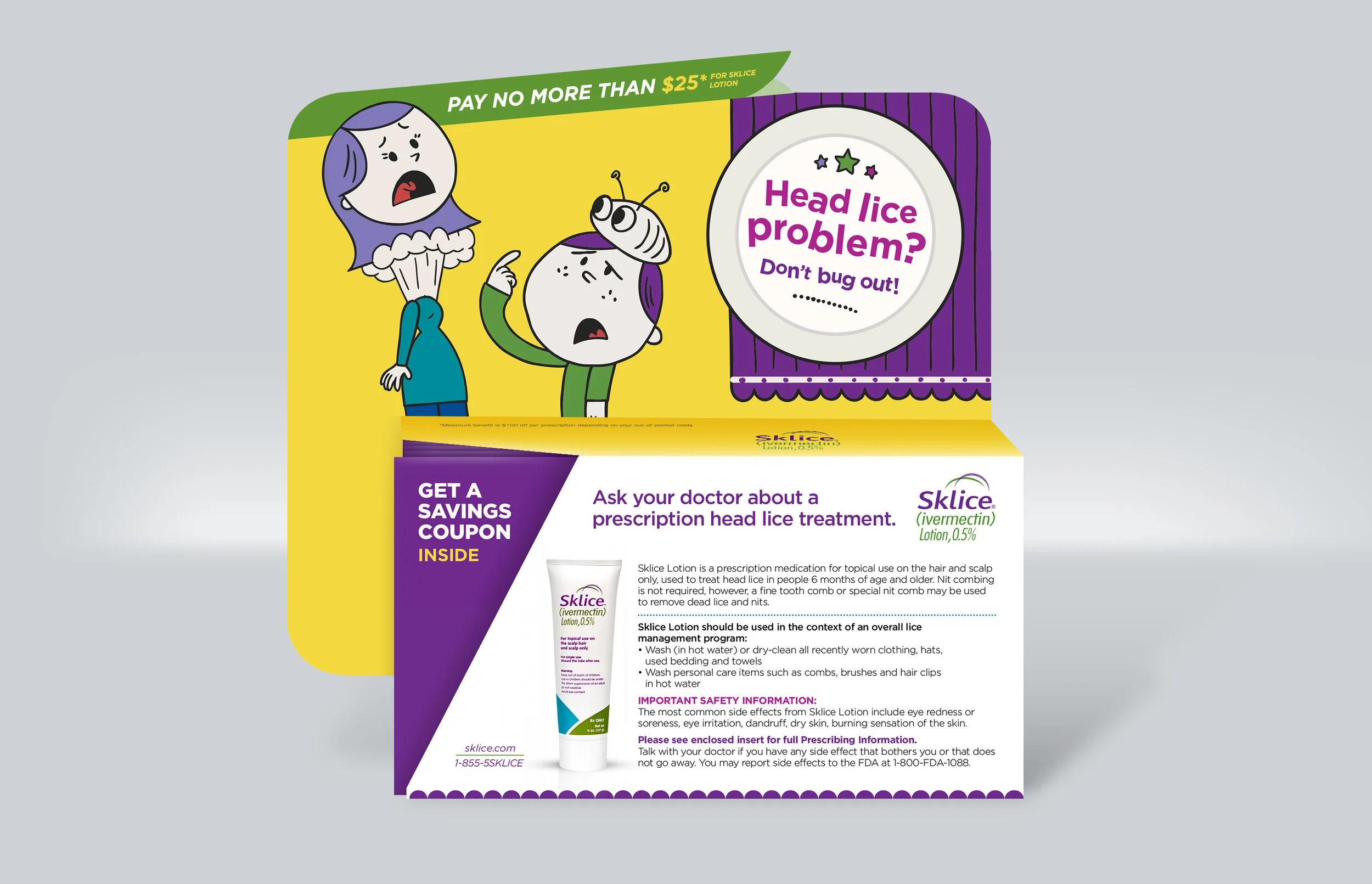 As a senior writer, I was in charge of the day-to-day writing for the Sklice website, banners ads, and patient brochure. I also took part in research for the “Don’t Bug Out” campaign.